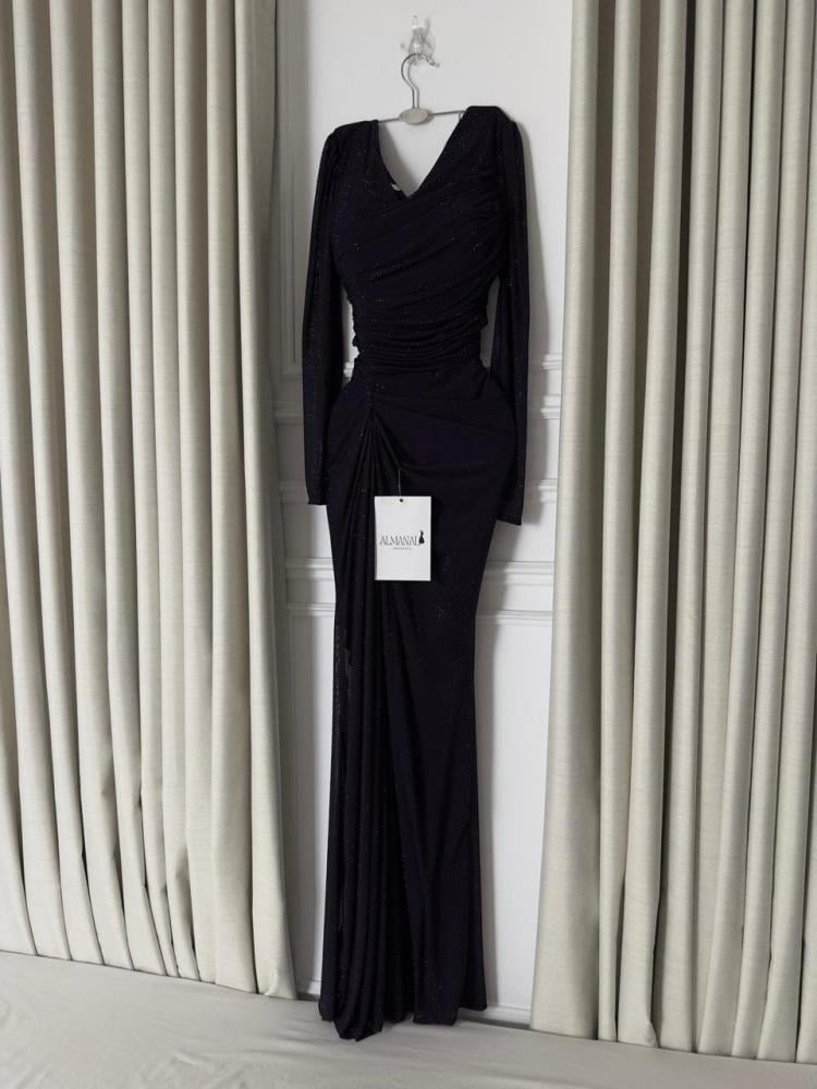 س: هل يمكن ارتداء فستان ناعم باذنجاني استرتش لمعة بأكمام في السهرات والمناسبات؟