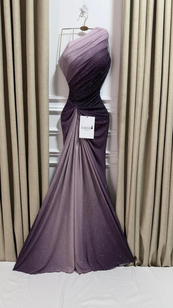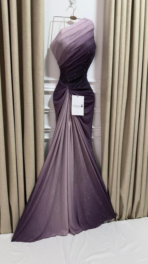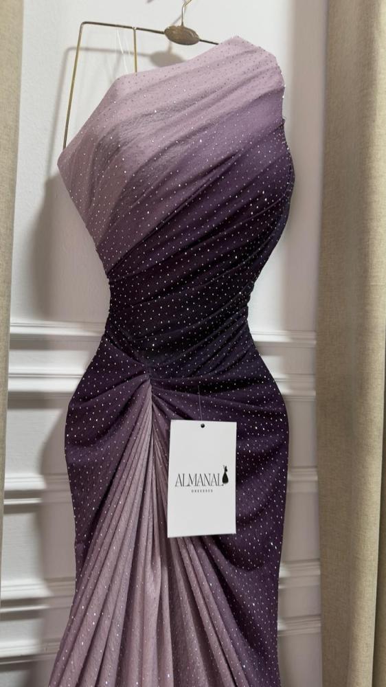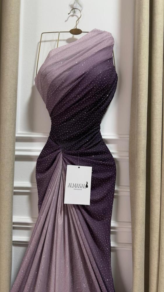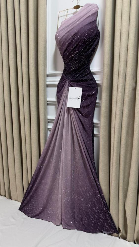المميزات – فستان سهرة موف بلمعة ناعمة وقصة ضيقة
