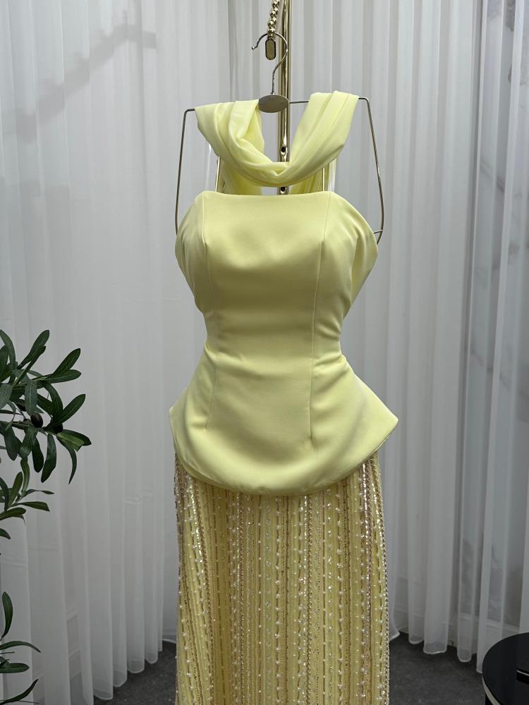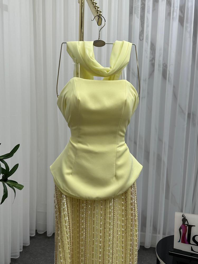 - يُجفف بالتعليق للحفاظ على شكل الفستان.
