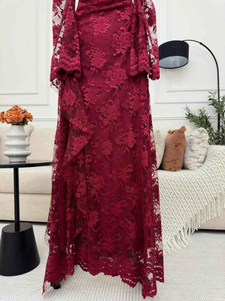 - خامة دانتيل فاخرة مع فصوص متلألئة تضفي بريقًا فاخرًا.