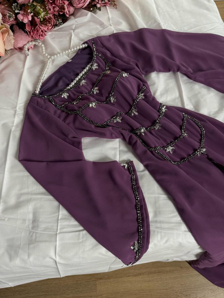 - تنظيف جاف للحفاظ على نعومة الشيفون وجودة البطانة.