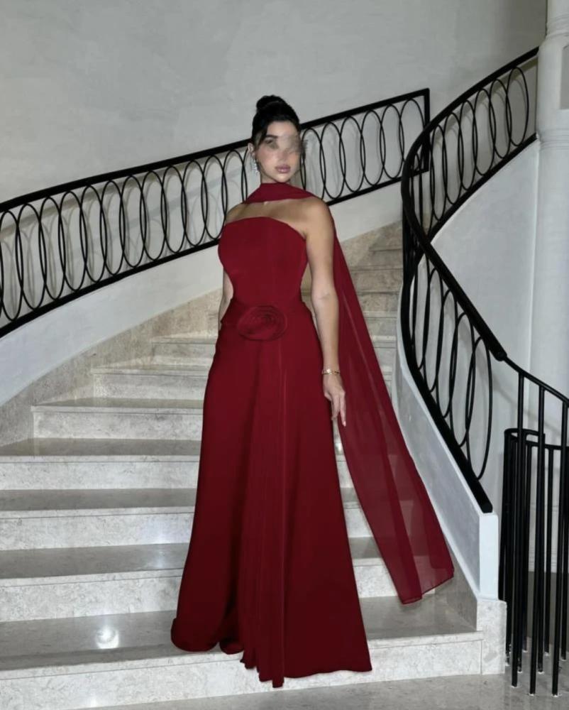 مميزات – فستان عنابي فوق كريب وتحت شيفون