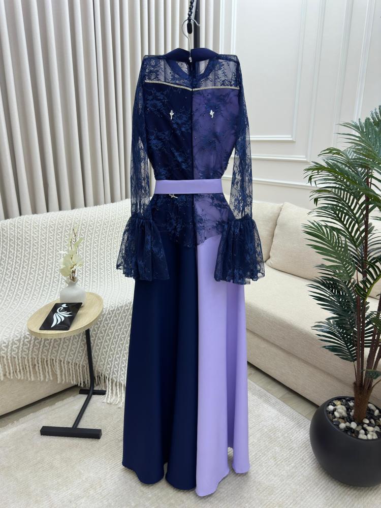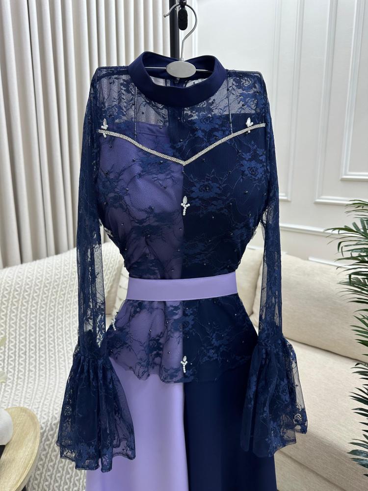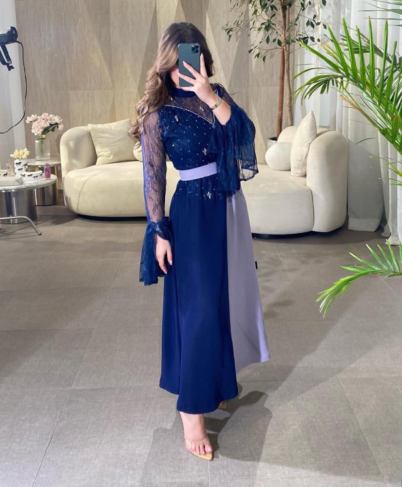 - تصميم أنثوي راقٍ مع دانتيل فرنسي فاخر مطرز بدقة.