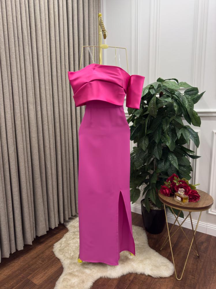 تألقي بإطلالة حيوية وراقية مع فستان ناعم فوشي باربي، الذي يجمع بين الرقي والأناقة بفضل خامته الناعمة ولونه الفوشي الجذاب. تصميمه الأنيق يمنحك لمسة أنوثة متألقة، مما يجعله مثالياً للسهرات والمناسبات الخاصة والإطلالات اليومية الأنيقة.