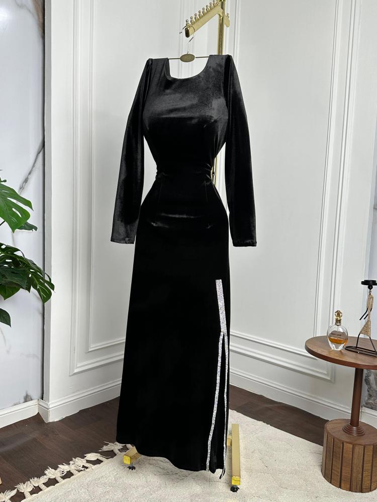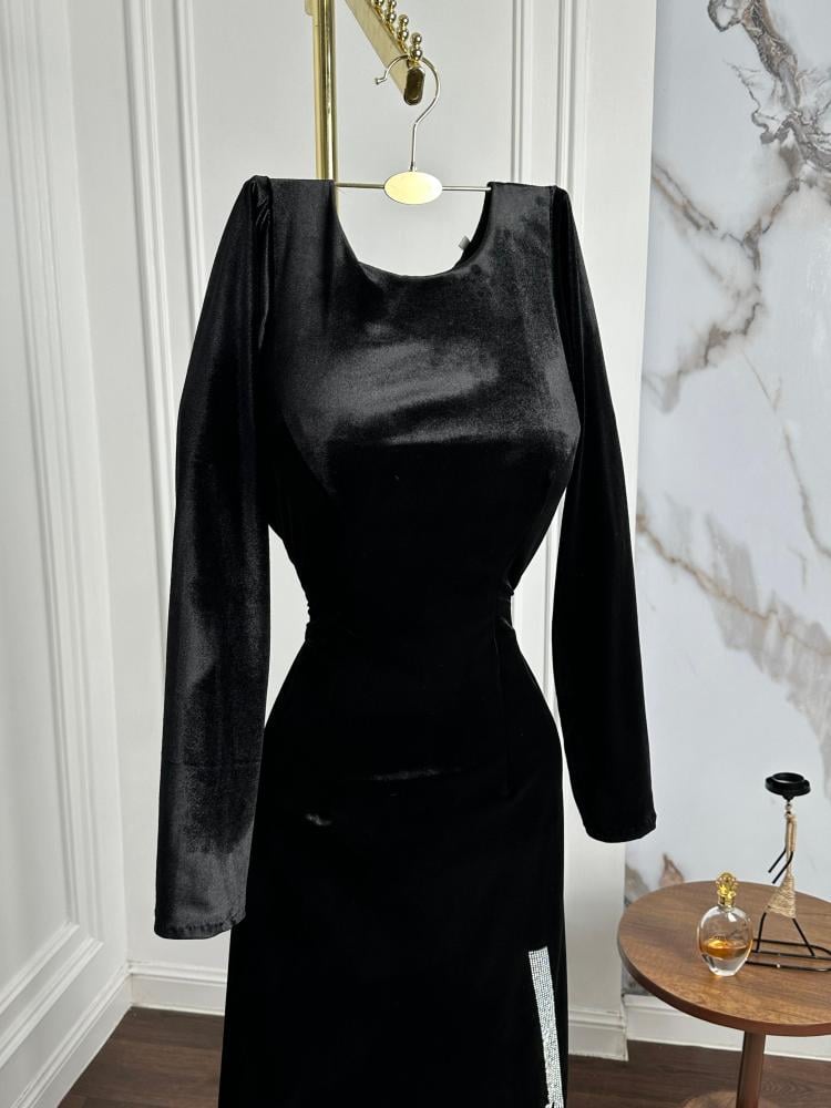 - تنظيف جاف للحفاظ على نعومة المخمل وجودة الفستان.