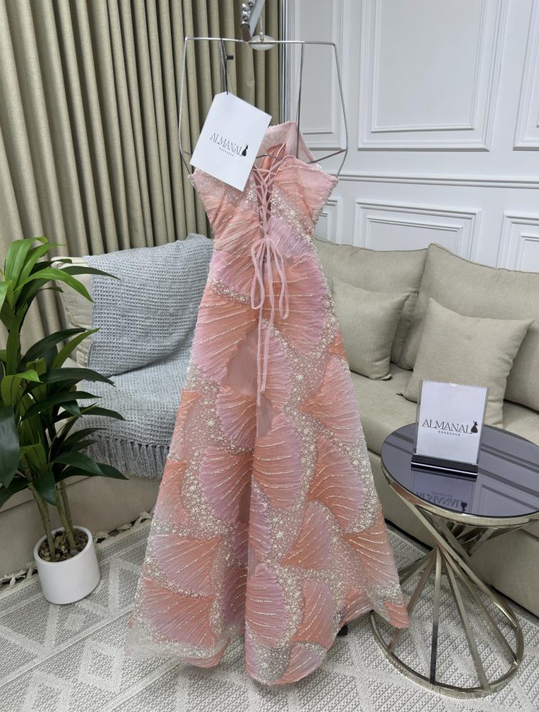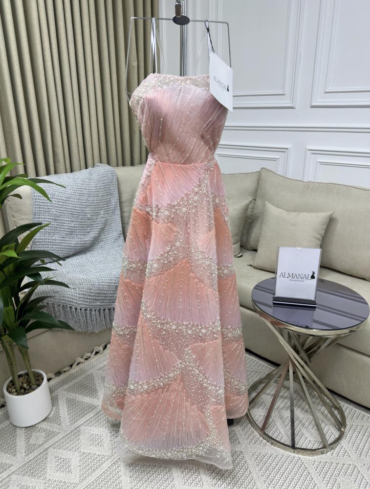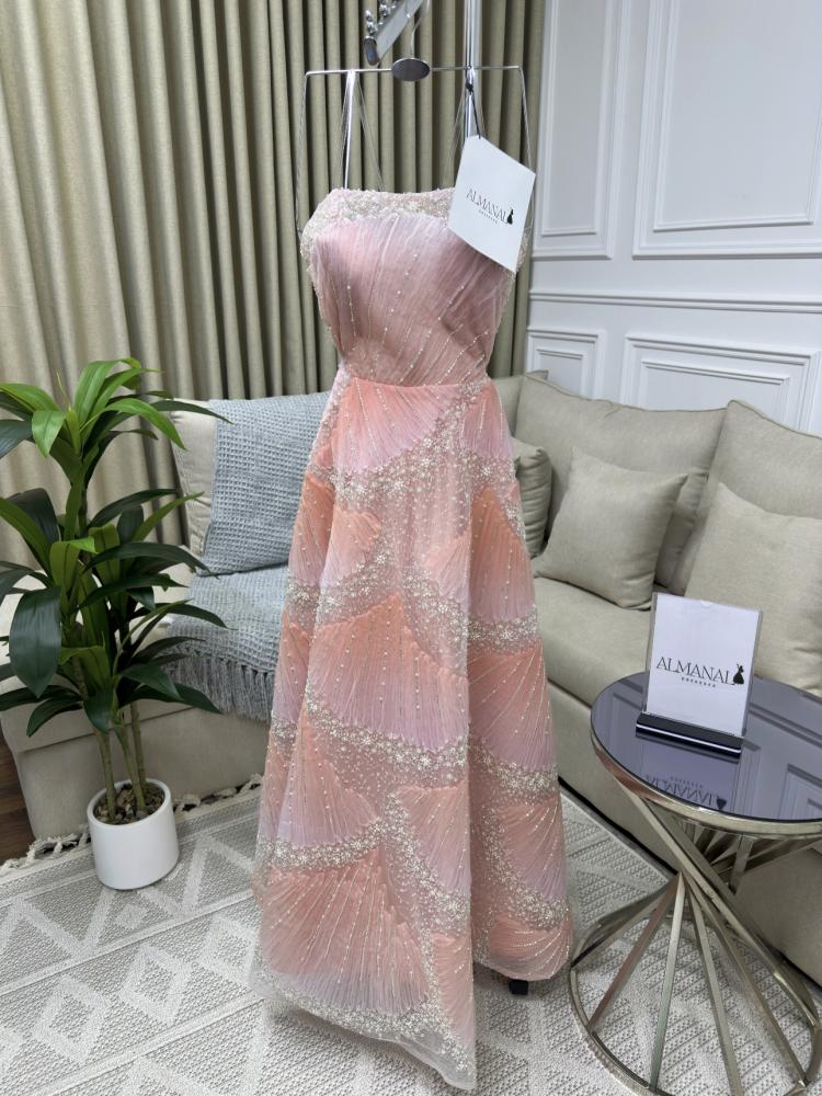 مميزات – فستان سهرة مطرّز وردي/وردي مشمشي