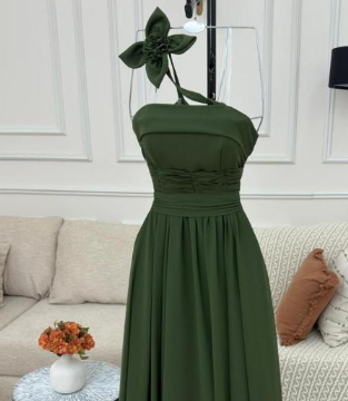 من تشكيلتنا: فستان زيتي كلوش – تصميم أنيق يجمع بين البساطة والرقي، مثالي للإطلالة النهارية.