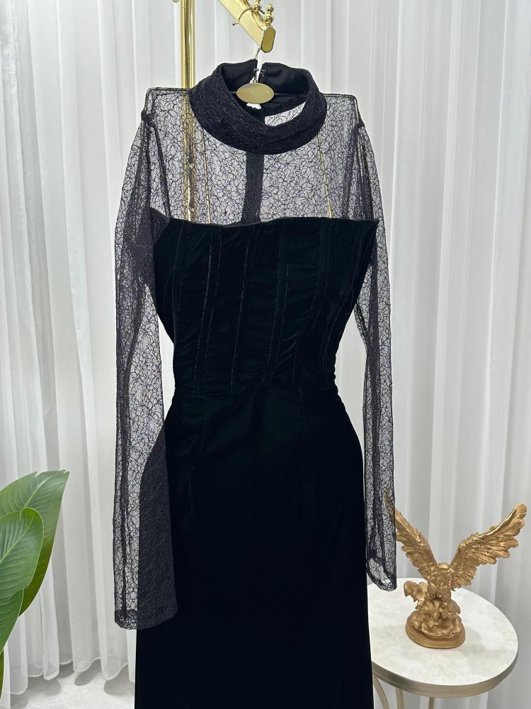 س: هل يناسب فستان مخمل كوري بدانتيل فاخر المناسبات الفاخرة؟