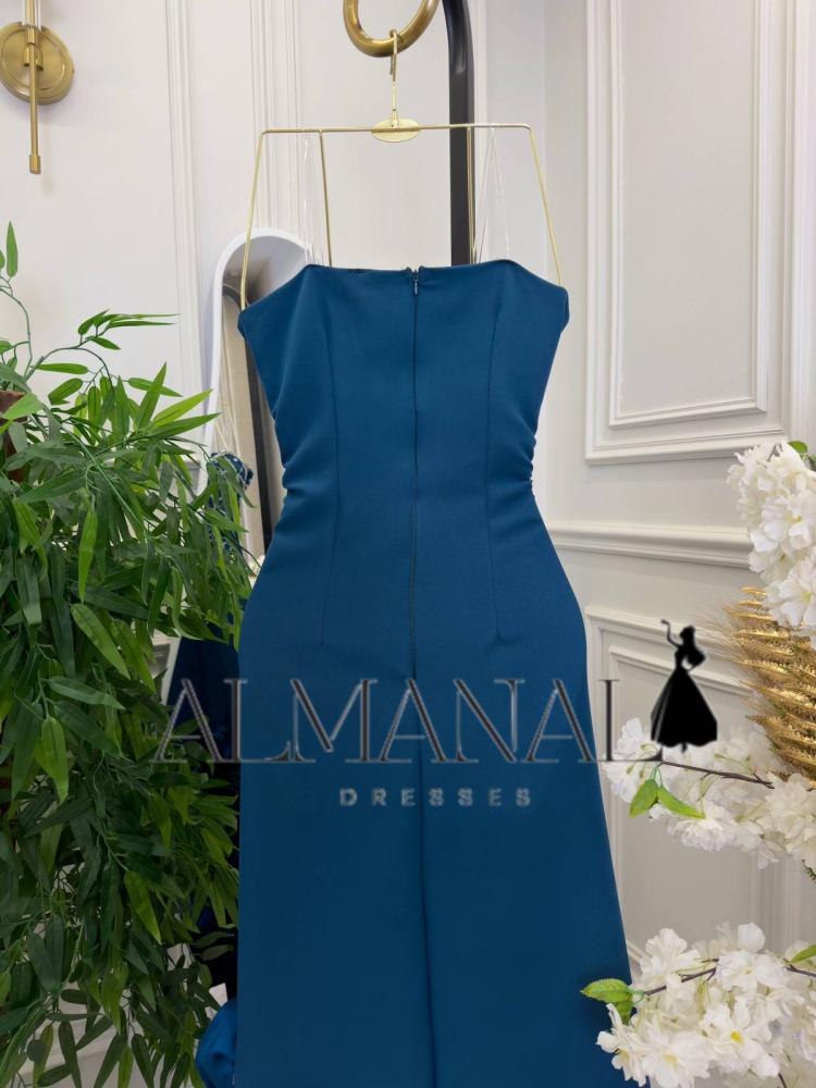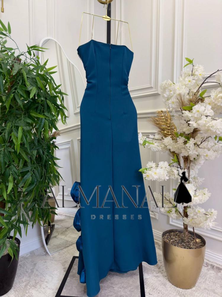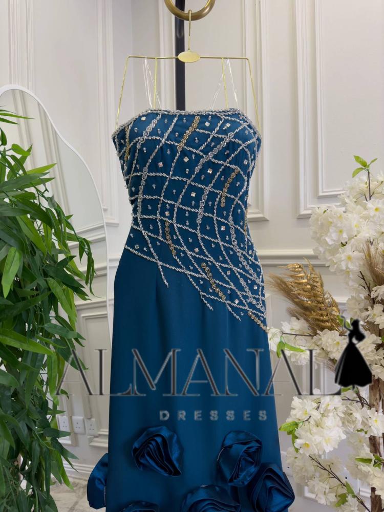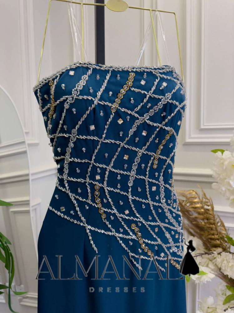 المميزات: فستان سهرة أزرق كريب ملكي مطرز بالكامل بالخرز
