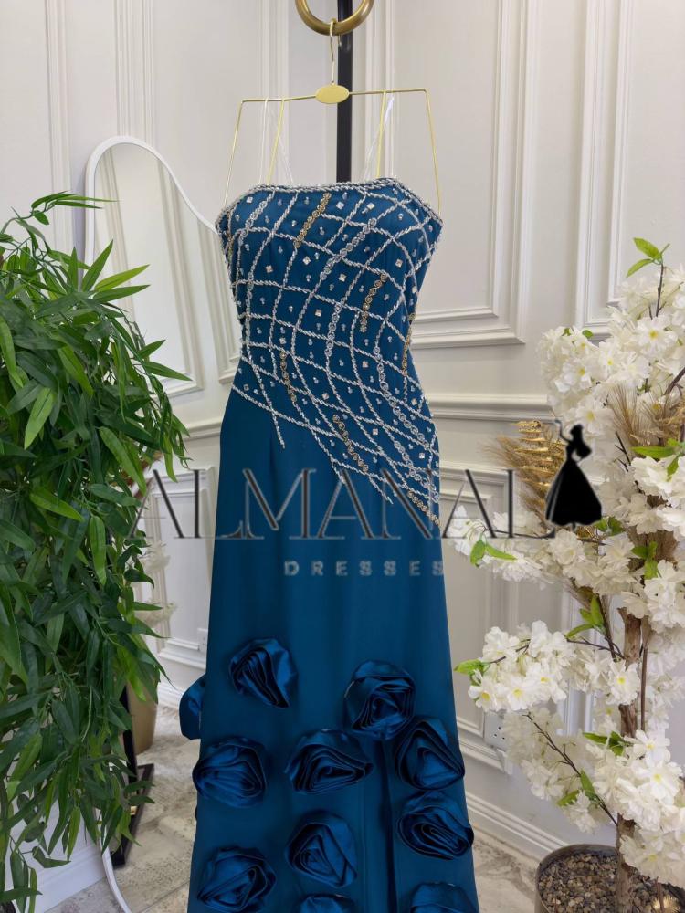 تألقي بإطلالة ملكية وفاخرة مع فستان سهرة أزرق كريب ملكي مطرز بالكامل بالخرز اللامع مع تفاصيل ورود جانبية أنيقة، حيث يجمع الفستان بين فخامة اللون الأزرق الملكي وخامة الكريب الفاخرة مع تطريز كامل بالخرز اللامع يضفي بريقًا ساحرًا على التصميم. تفاصيل الورود الجانبية تمنح الفستان لمسة أنثوية راقية وحركة أنيقة، ليكون خيارك المثالي للسهرات والمناسبات الخاصة التي تتطلب حضورًا متألقًا وجاذبية استثنائية.