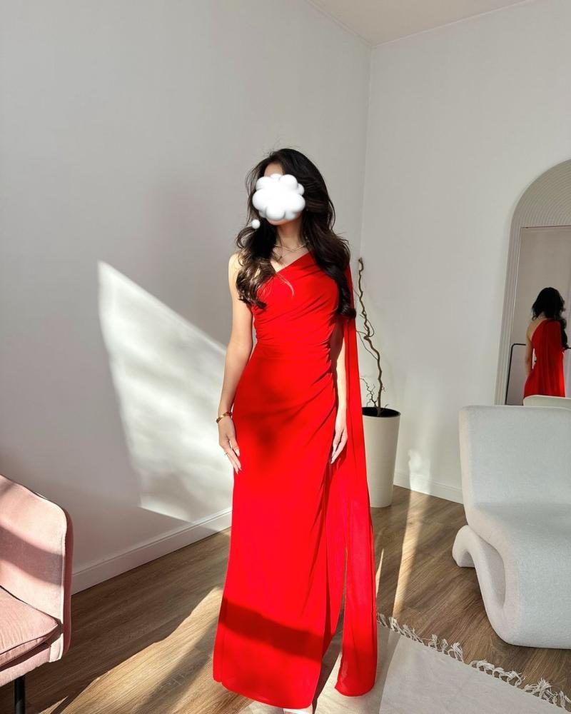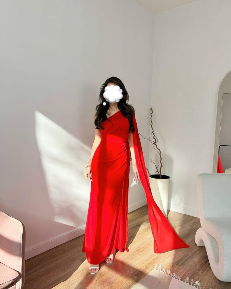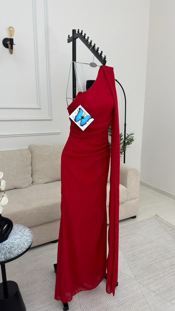 - لون أحمر جذاب يمنح الفستان حضورًا ملفتًا ومميزًا.