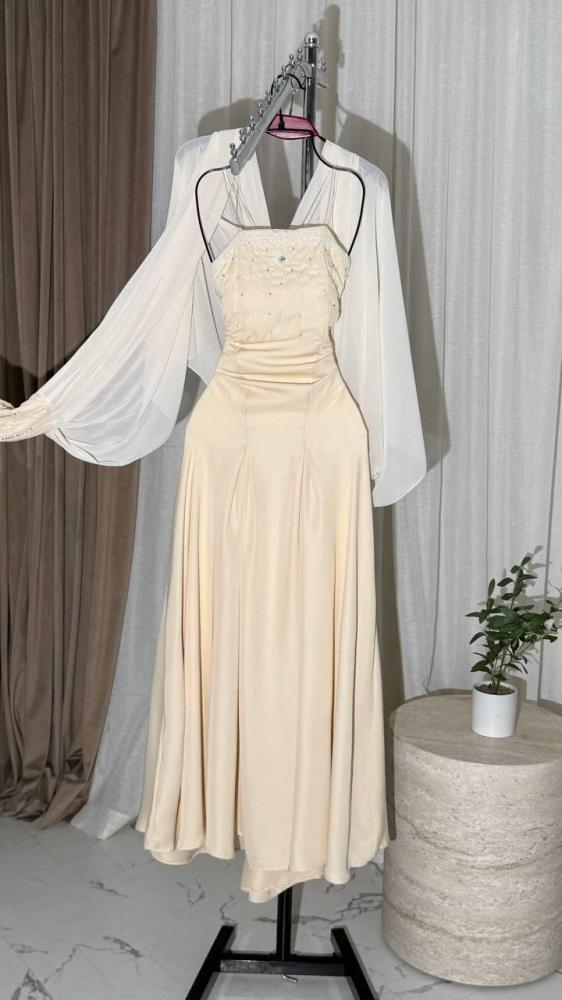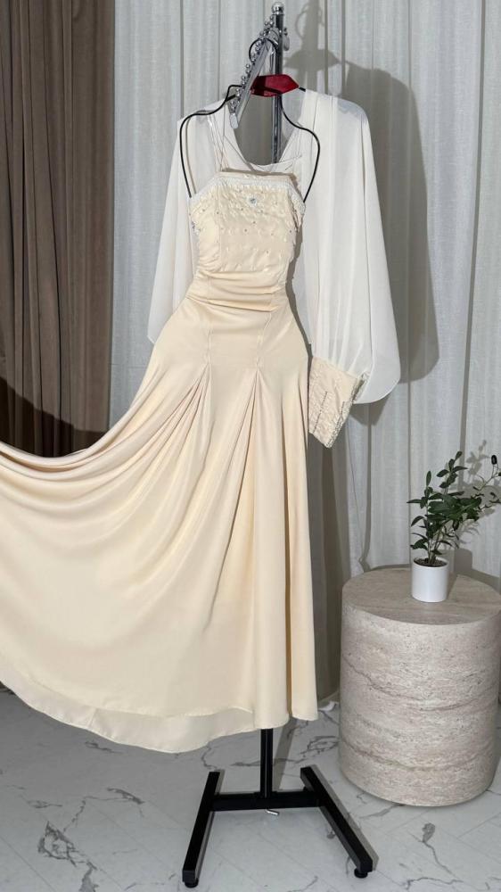 - ج: نعم، تجمع الخامات بين النعومة والشفافية مع راحة وحركة مناسبة تجعل الفستان أنيقًا ومريحًا.