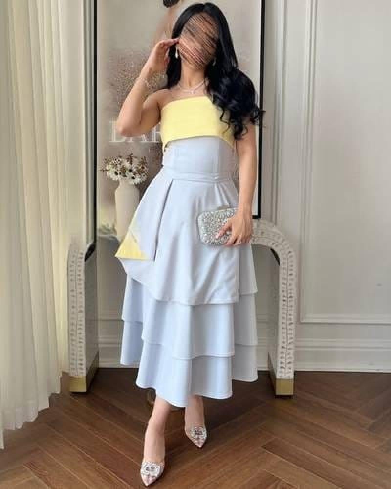 - س: هل يناسب فستان ناعم لونين كلوش طبقات السهرات والمناسبات الرسمية؟