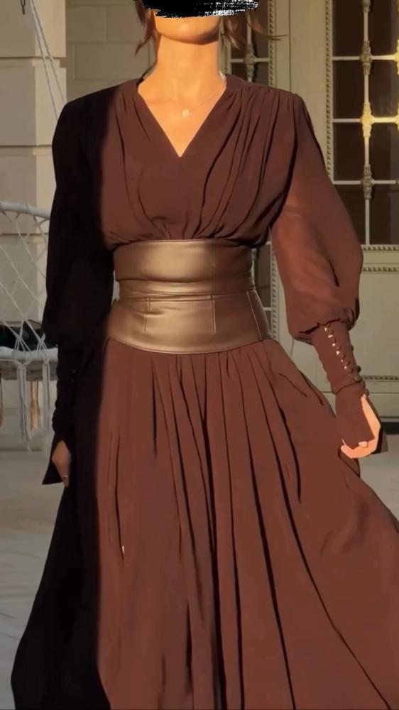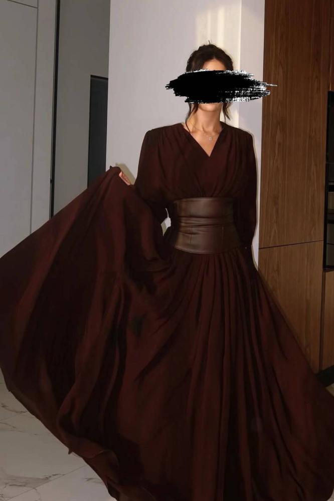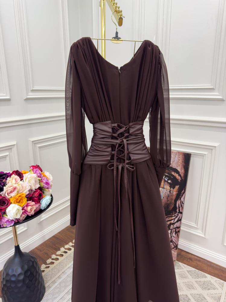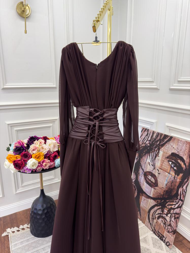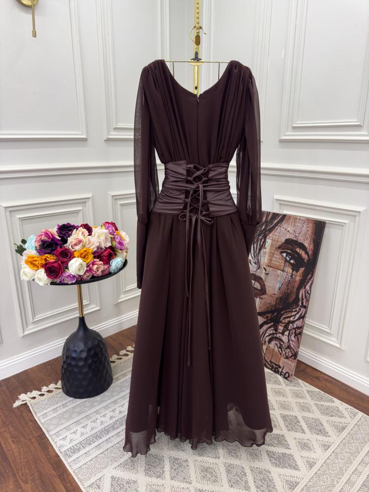 - س: هل يناسب فستان ناعم بني شيفون السهرات والمناسبات الرسمية؟