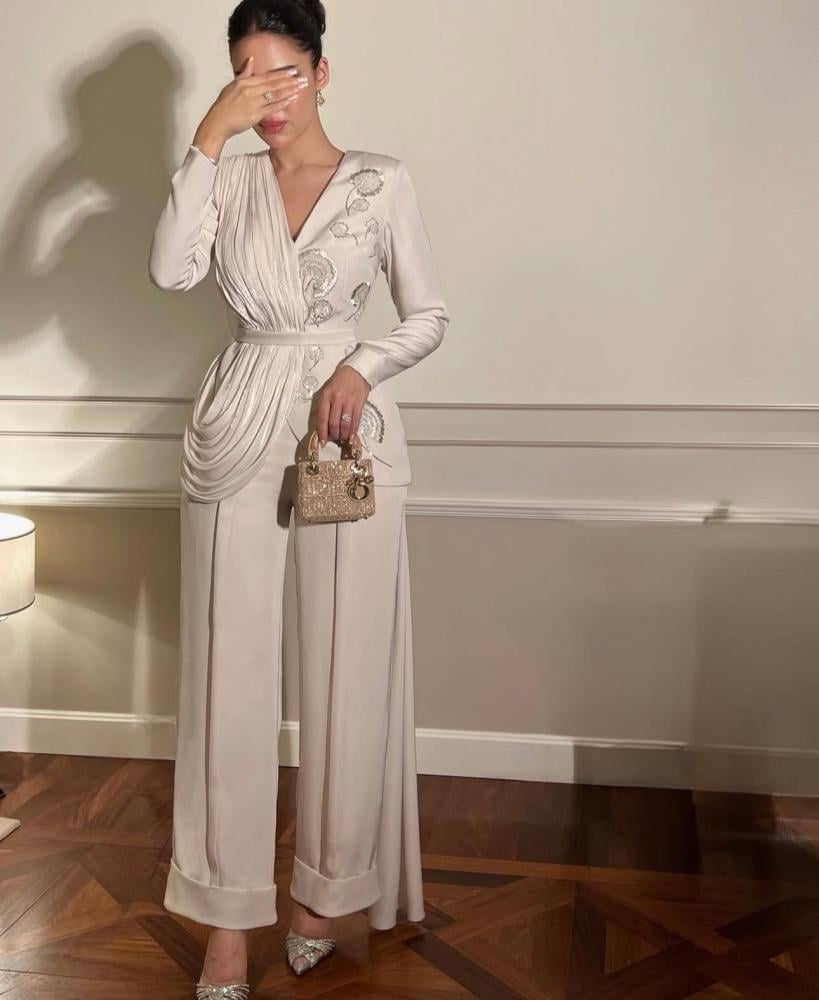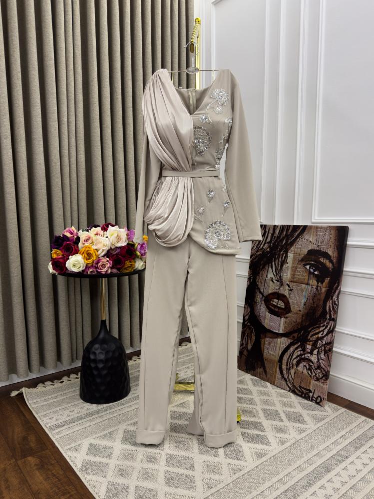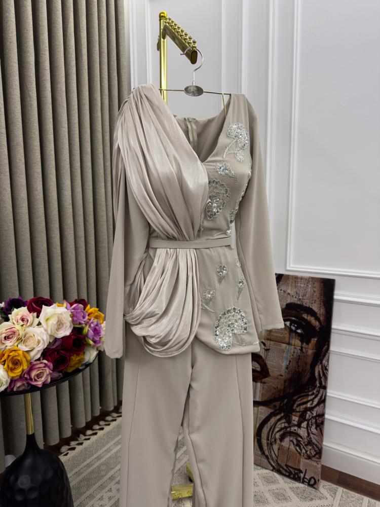 - تطريز دقيق يضيف لمسة فاخرة ومميزة للجمبسوت.